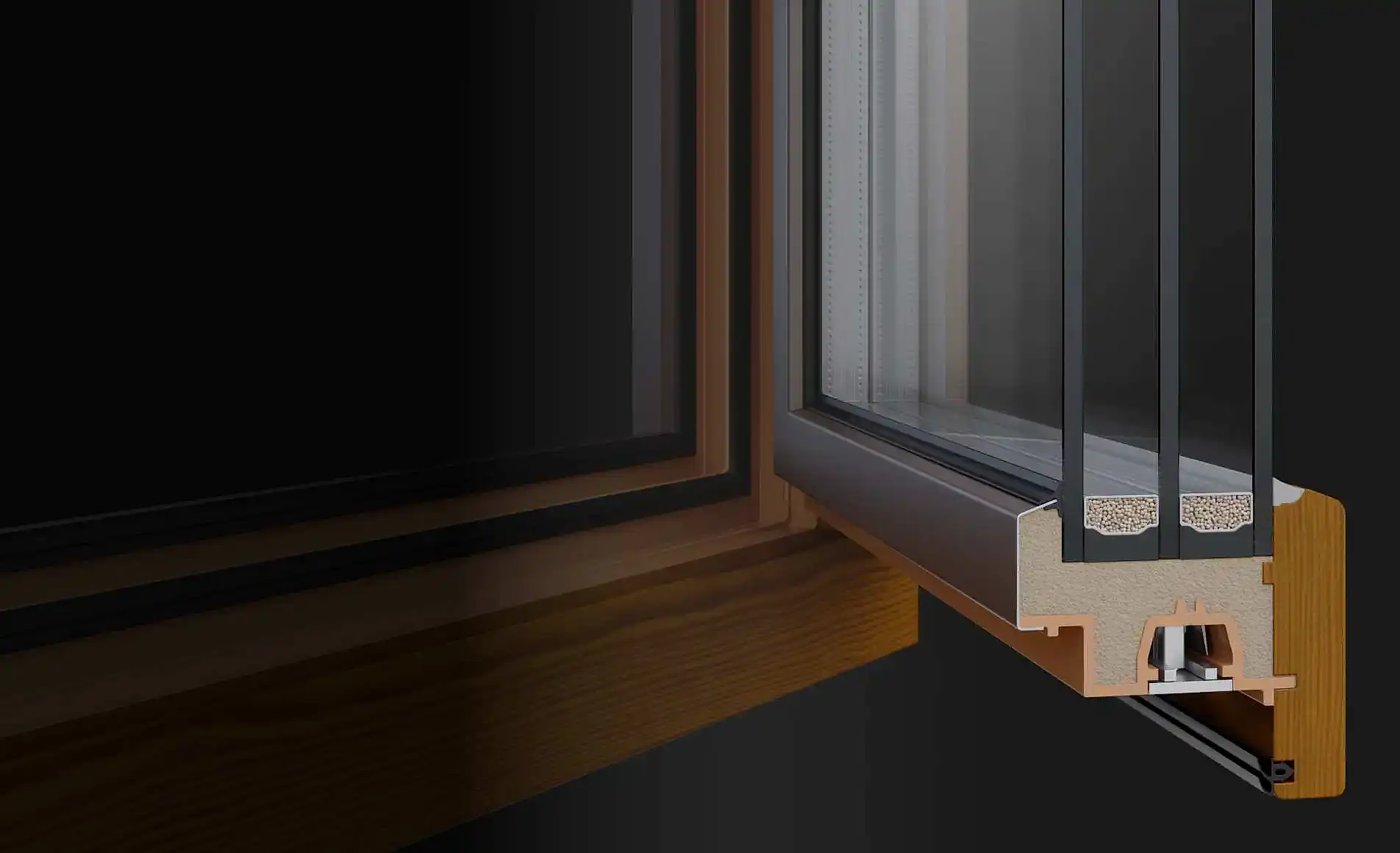 - Натуральное дерево, тёплый пенополиуретан и алюминий в одной системе